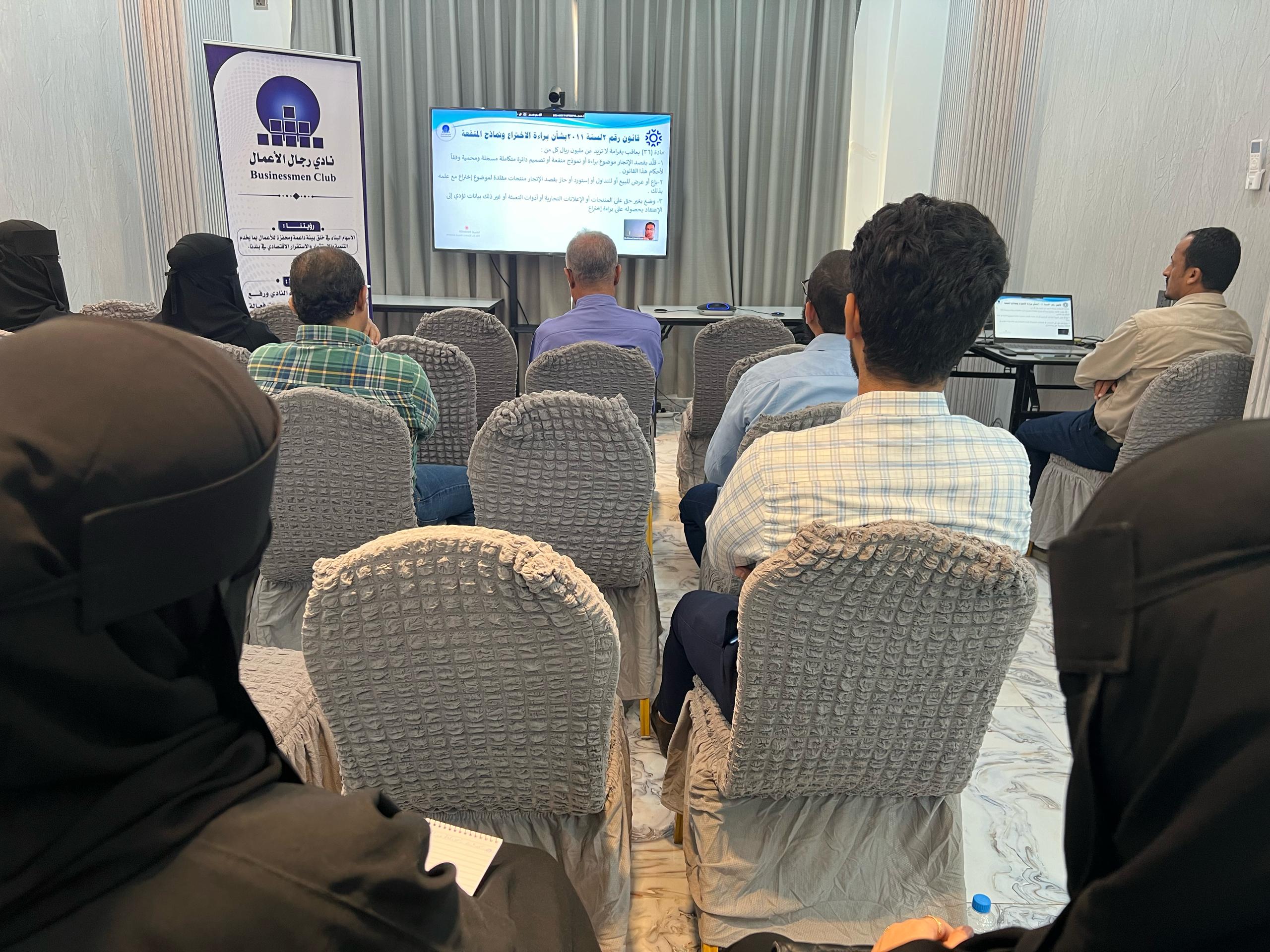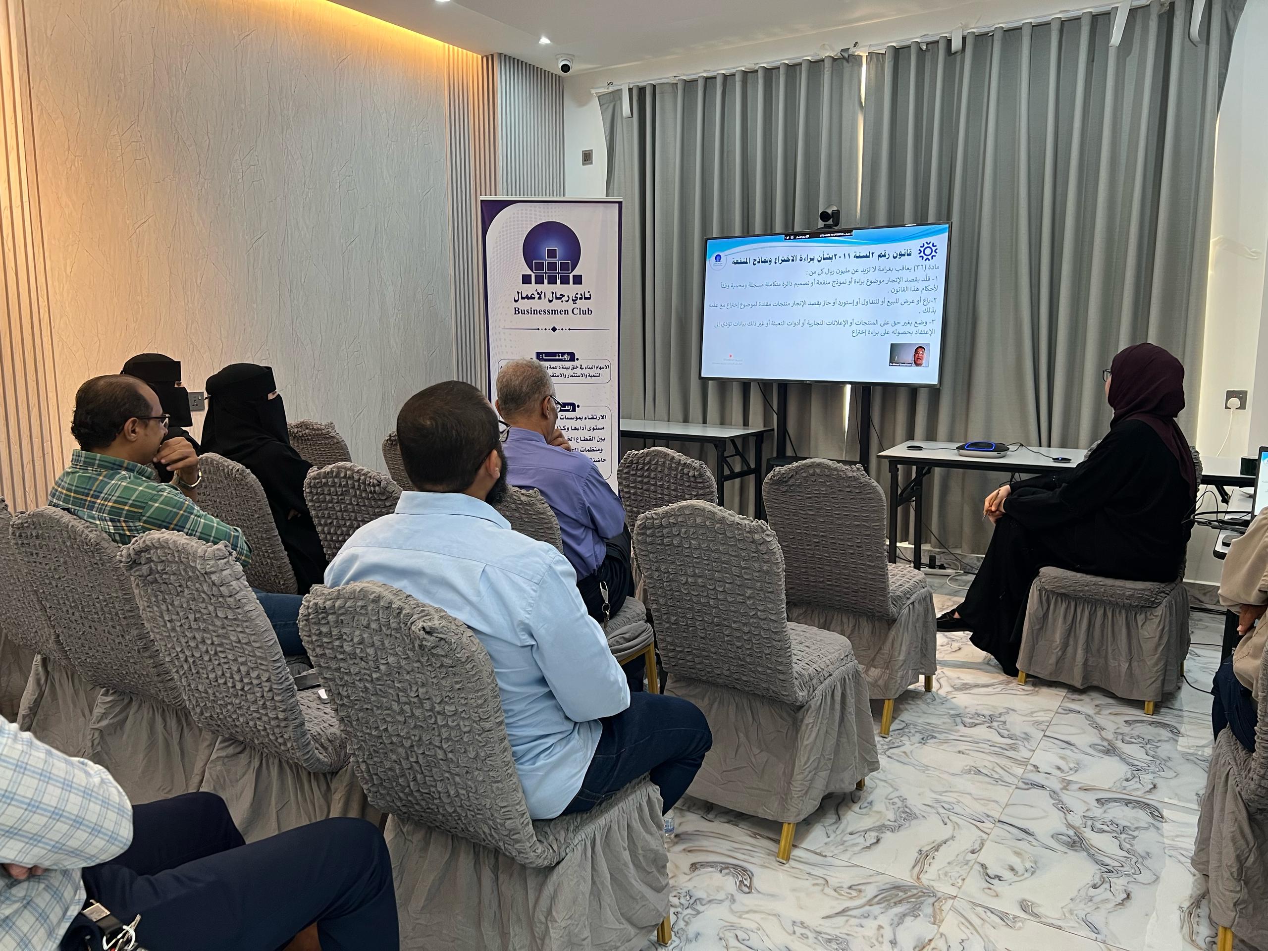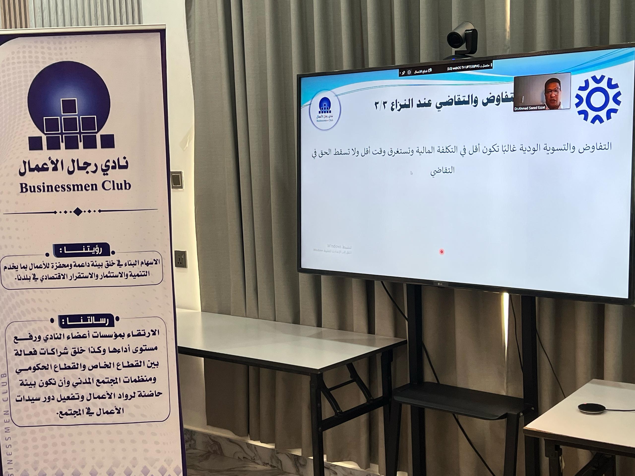 نظم نادي رجال الأعمال اليوم جلسة نقاشية بعنوان “الملكية الفكرية كرأس مال غير ملموس: فرص وتحديات في عالم الأعمال الحديث”، قدمها الخبير الدكتور أحمد سعيد عزت.