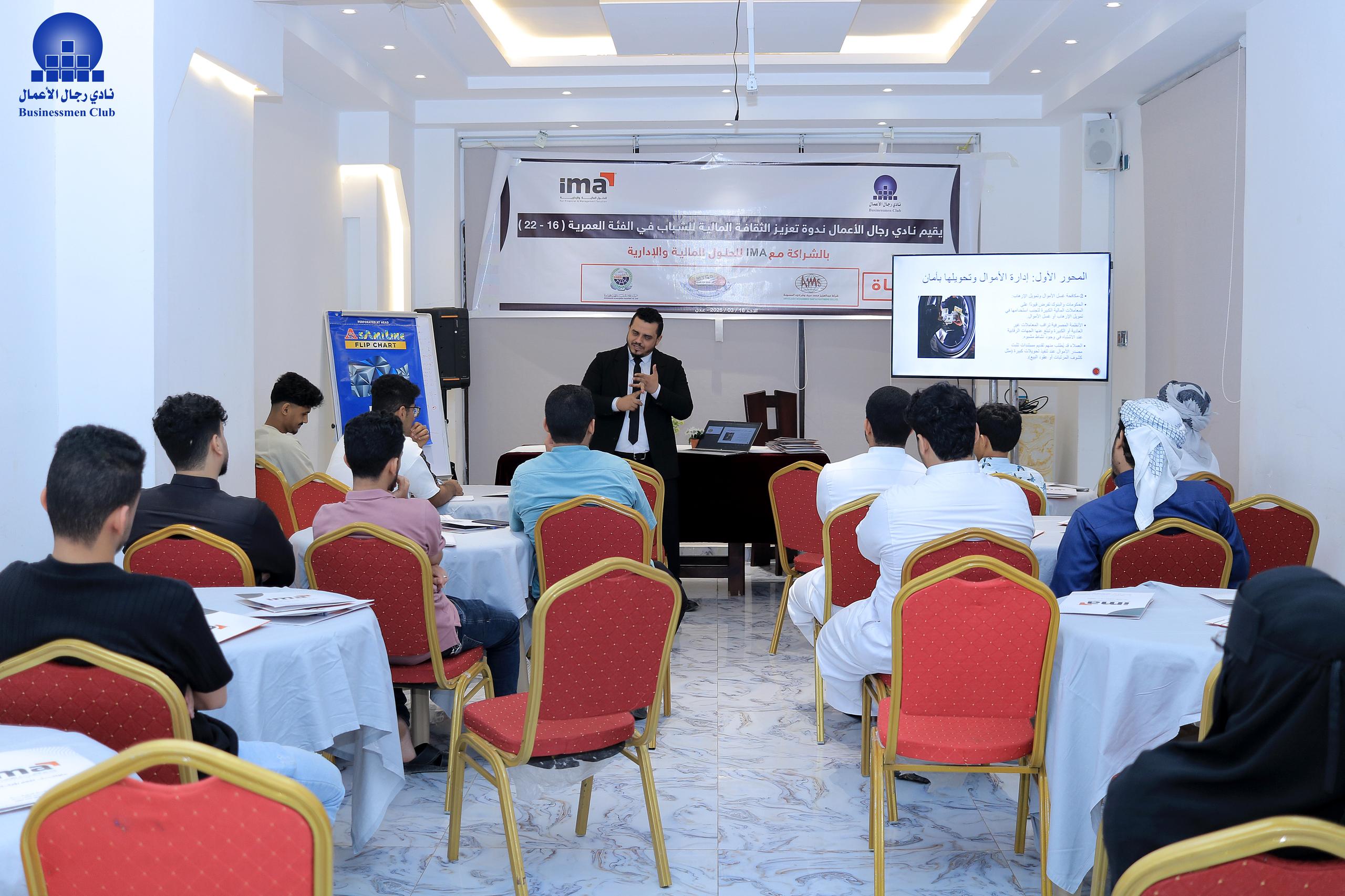 نظم نادي رجال الأعمال ندوات تثقيفية لتعزيز الوعي المالي لدى الفئات العمرية المختلفة، برعاية شركة عبدالعزيز محمد سيف، وشركة مسلم، وشركة بن عوض النقيب، وقدمها نخبة من المتخصصين:
